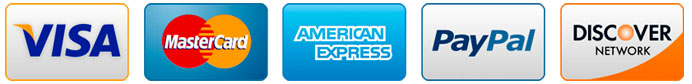 We accept all major credit cards, VISA, MasterCard, Discover, and American Express credit cards, as well as PayPal.