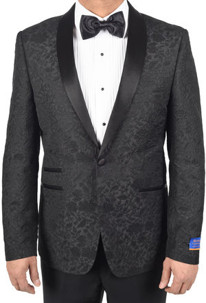 Berragamo Black Slim Fit One Button Brocade Jacket