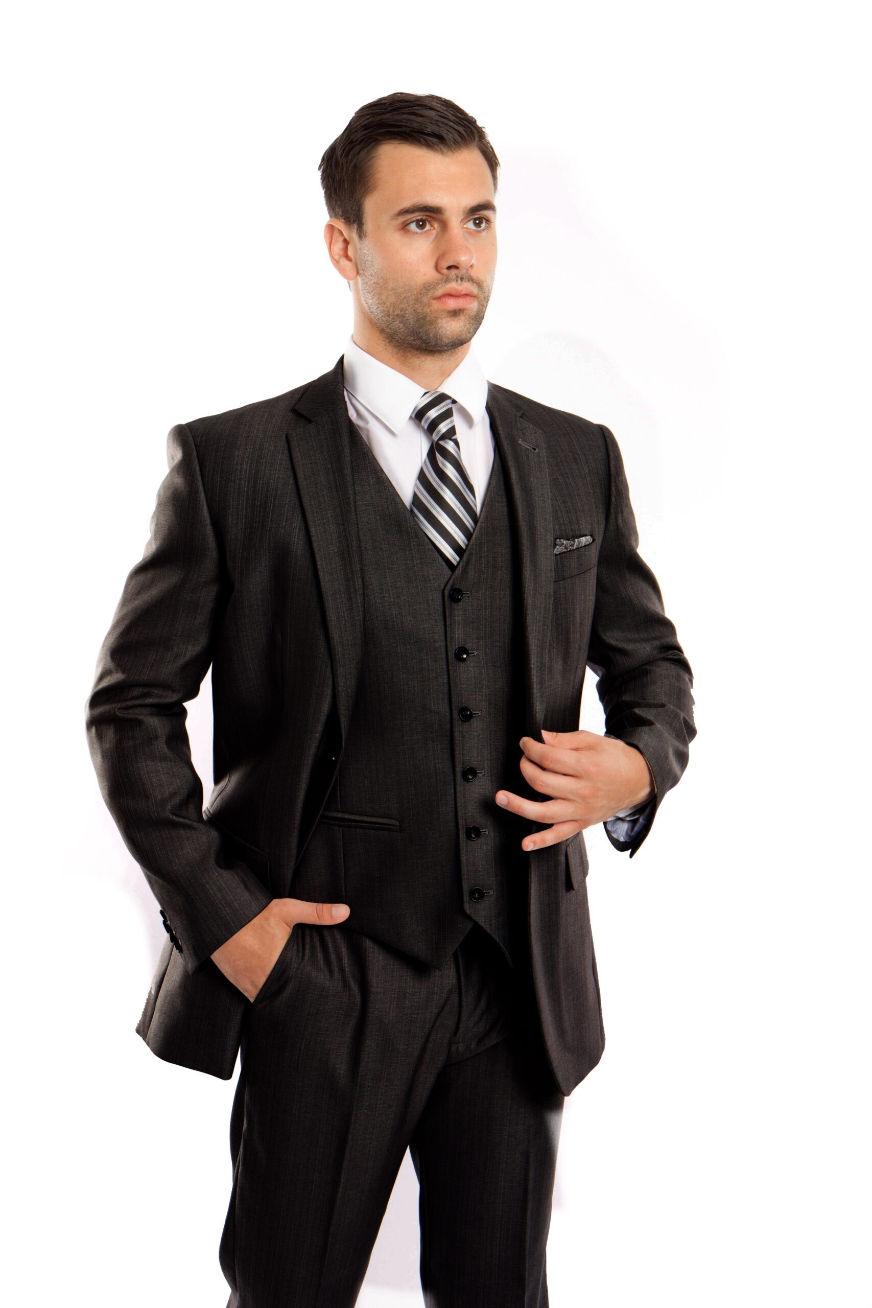 Black Tailored Fit Two Button 3-Piece Suit