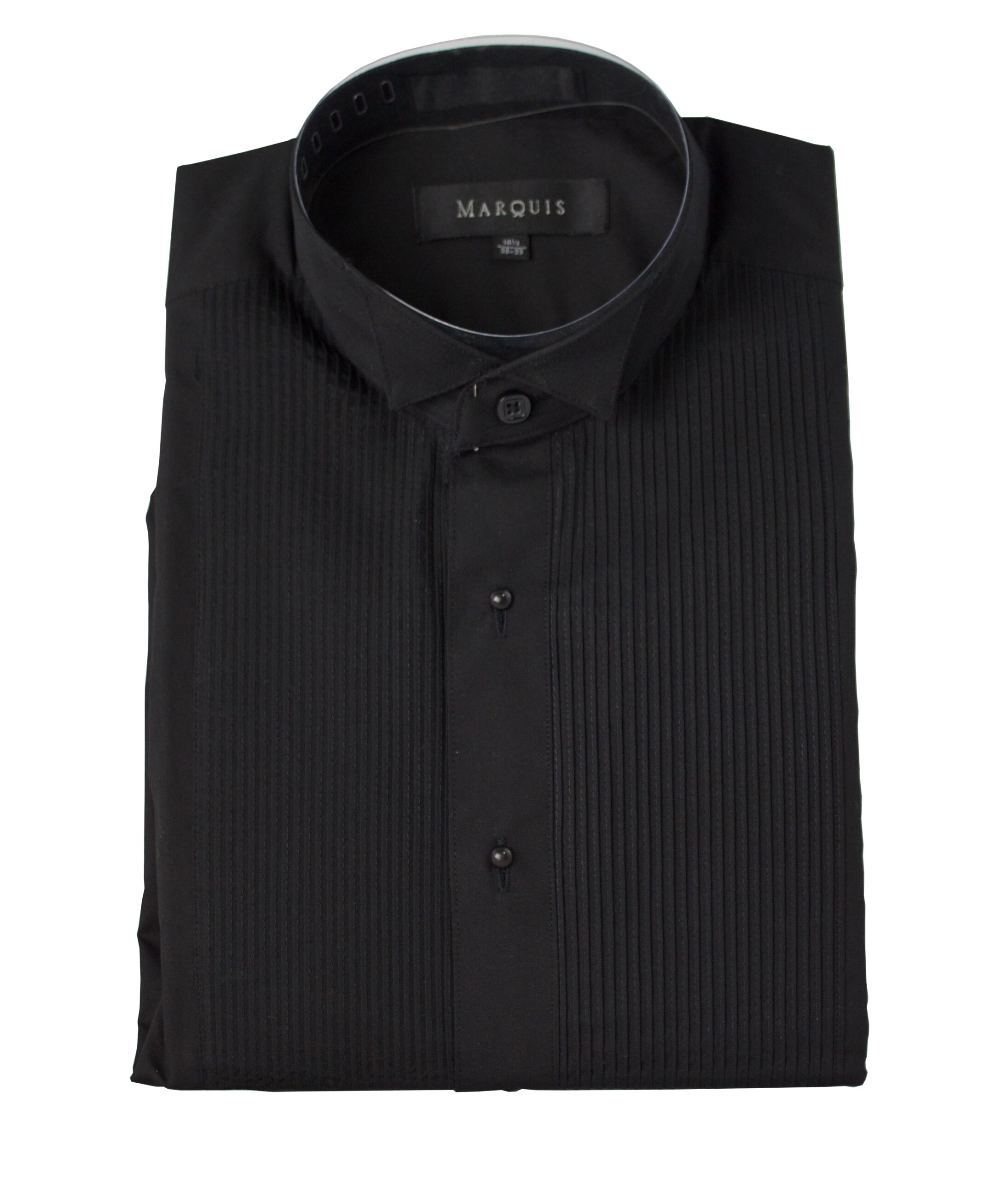The black tuxedo shirt by Marquis is in an easy wearing regular fit which is a standard fit perfect for just about anyone. Although if you feel the need to make a few adjustments here and there by all means go ahead but emember to get one size up if you are in between sizes to ensure the tailor can adjust accordingly. Have measurements ready and skip the hassle of guessing at your sizing. The Marquis black tuxedo shirt also comes with a classic pleated design to make sure you look perfect for the occasion.