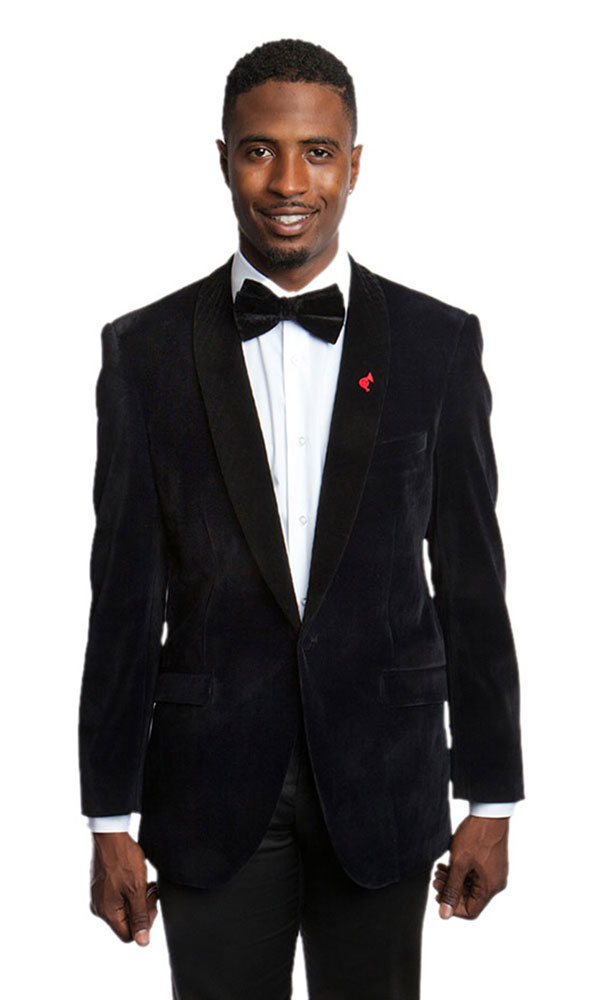Black Velvet Ultra Slim Fit One Button Smoking Blazer