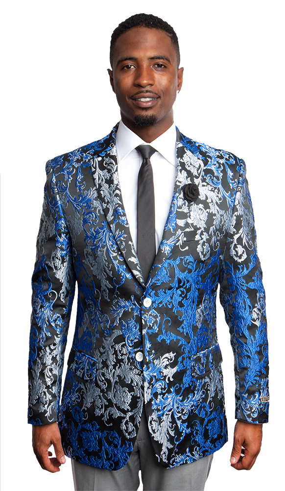 The flattering design of this blue and silver floral two button modern fit jacket a must have attire to any occasion. Comfort is given the upper hand in the overall design to ensure that you feel and look your best. Your overall look is not complete without this Blue and Silver Floral Two Button Modern Fit Jacket which is a must have in your wardrobe collection.