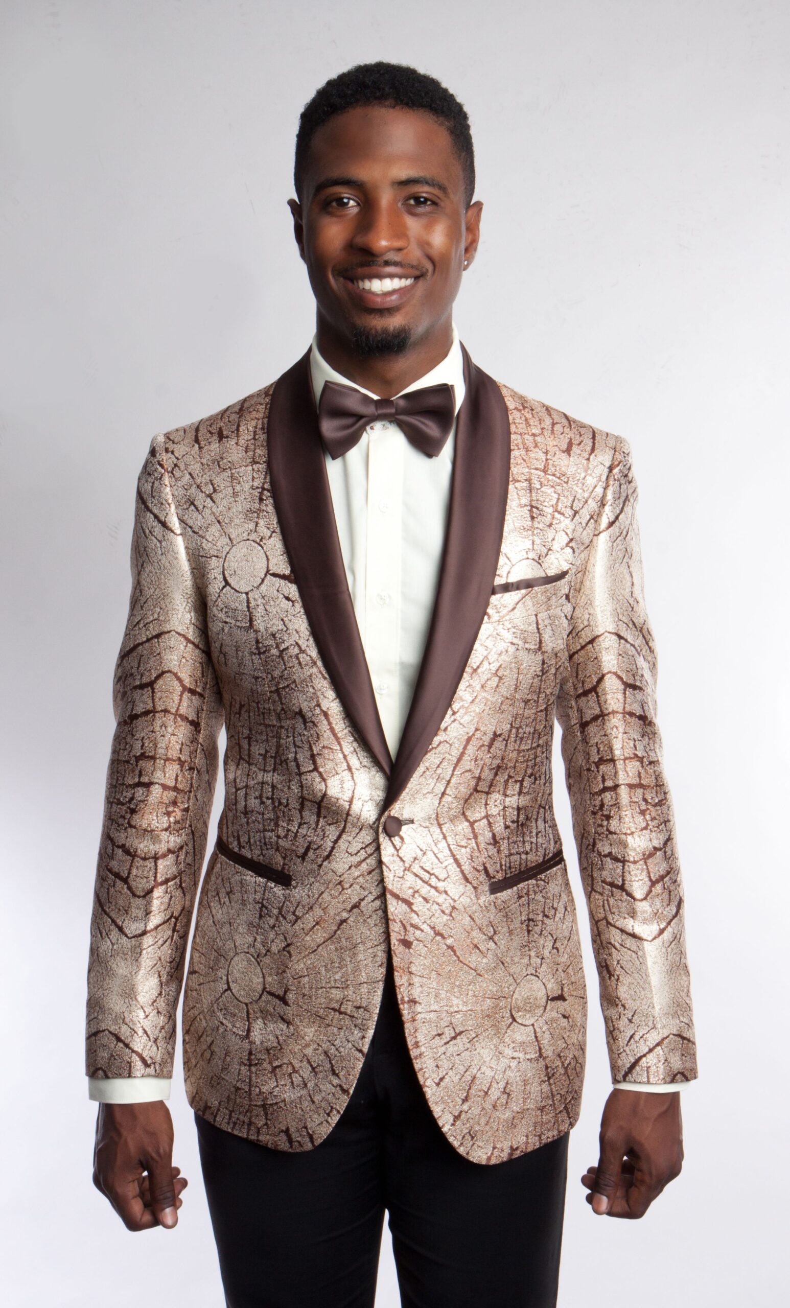 There’s nothing like a Gold Patterned Modern Jacket to make sure all eyes are on you. The jacket features a range of eye-catching detail that would look great with flat front black pants and a white shirt. Add a gold or complementary chocolate-colored bowtie to bring this whole look together in harmony.
