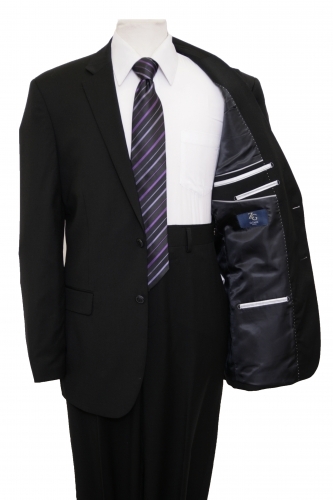 The Solid Black Wool Suit pants feature a classic flat front design, making them ideal for pairing with any suit jacket not just this one. You can mix and match your wardrobe just from this one Solid Black Wool Suit, making it a practical addition to your collection as well as an attractive one.