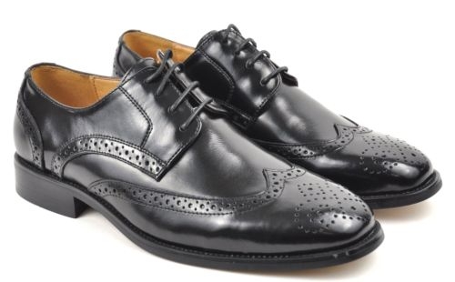 La Milano Black Men’s Leather Round Toe Wing Tip Oxford Dress Shoes