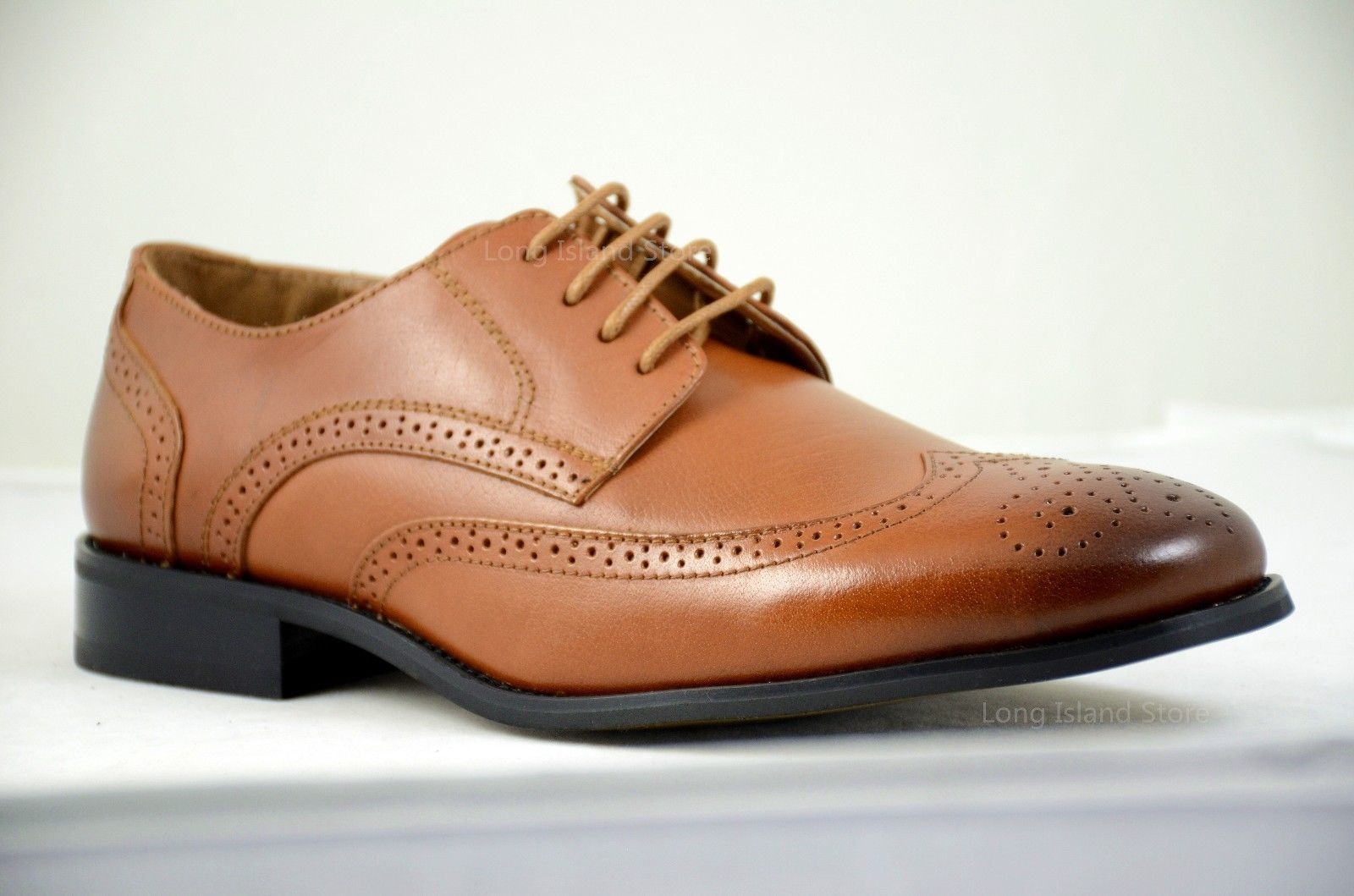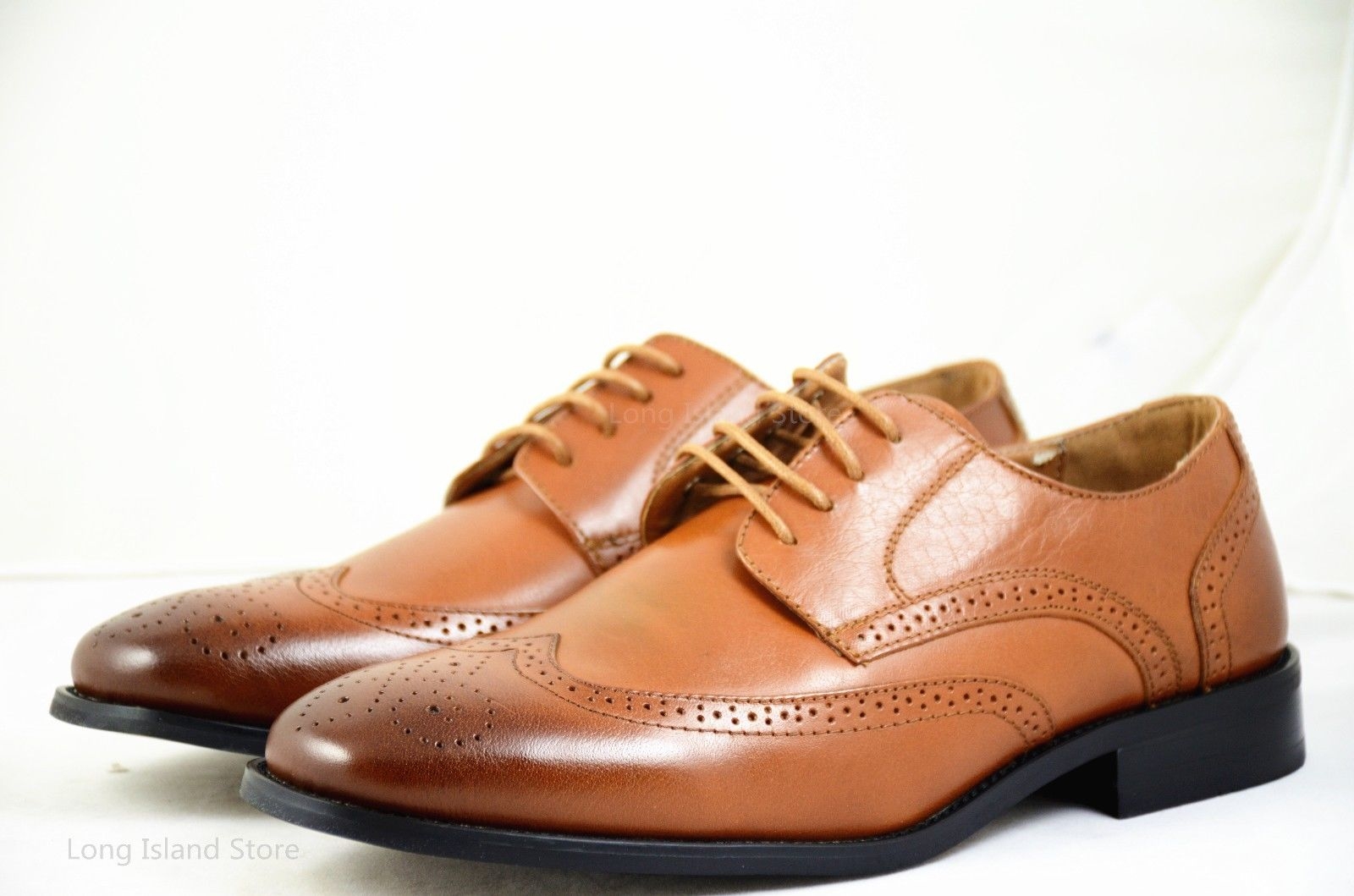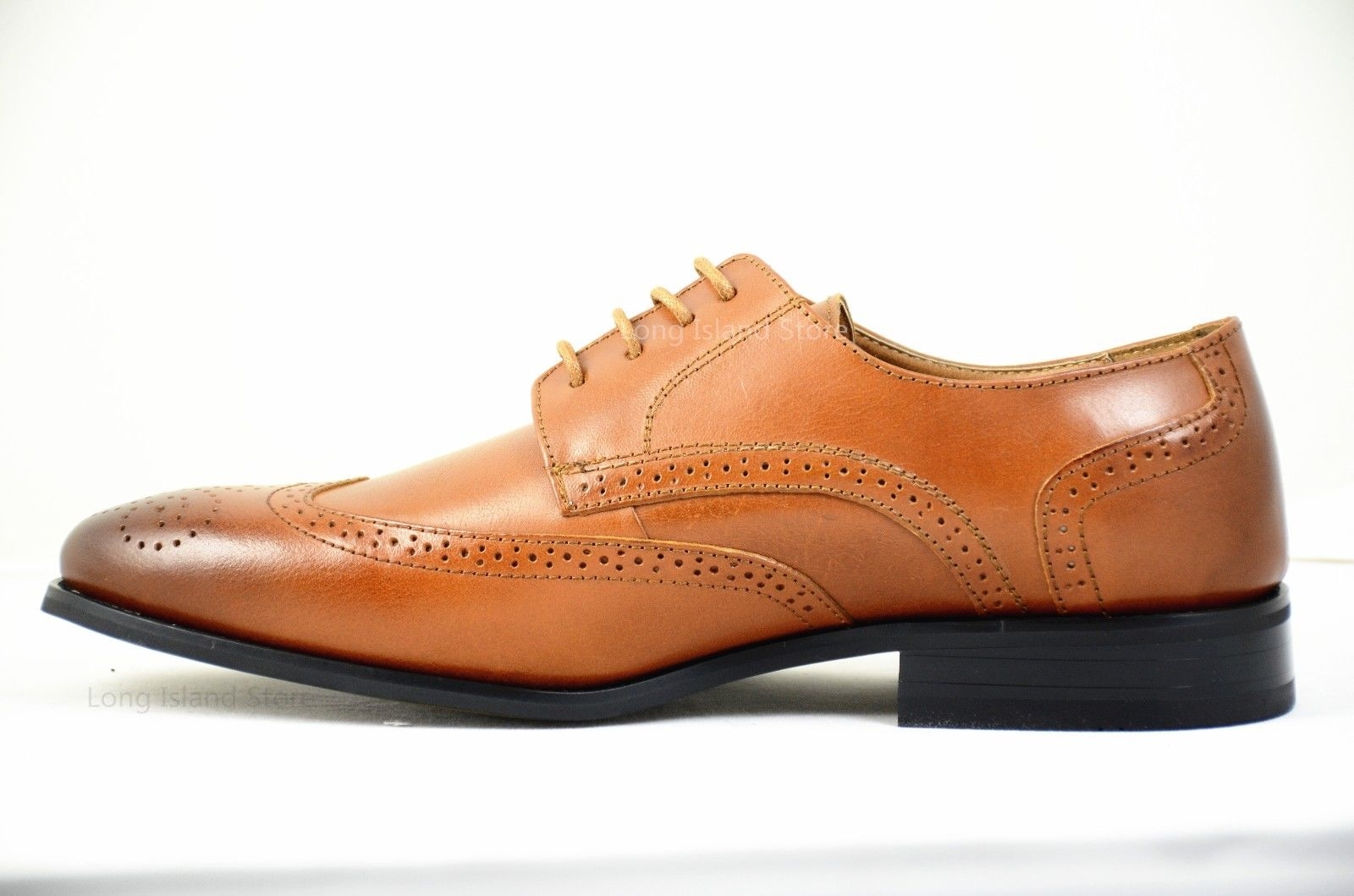 LA MILANO Mens Leather Cognac Oxford Lace Up Cap Toe Dress Shoes