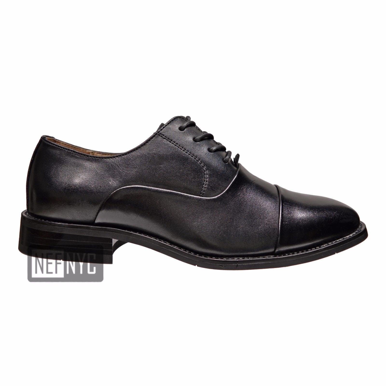 LA MILANO Mens Leather Oxford Lace Up Cap Toe Dress Shoes Black