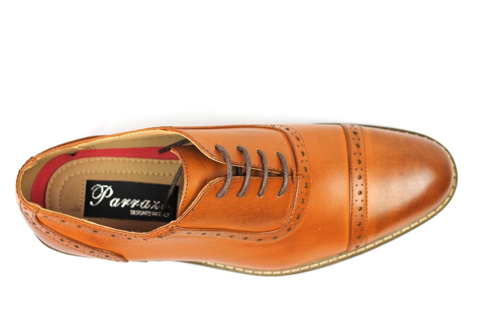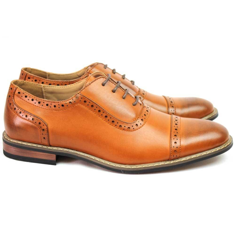 LA MILANO Mens Leather Oxford Lace Up Cap Toe Dress Shoes Brown