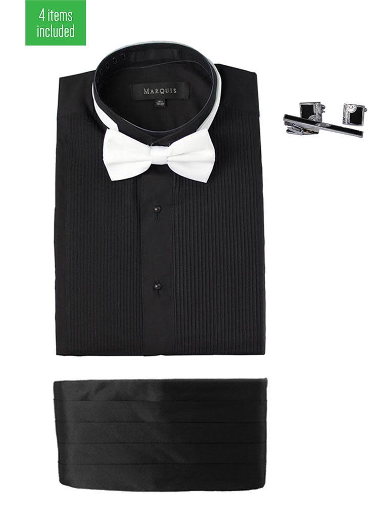 Marquis Black Tuxedo Shirt Set with Cummerbund