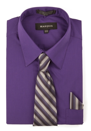 Marquis Purple Dress Shirt with Ties & Handkerchief