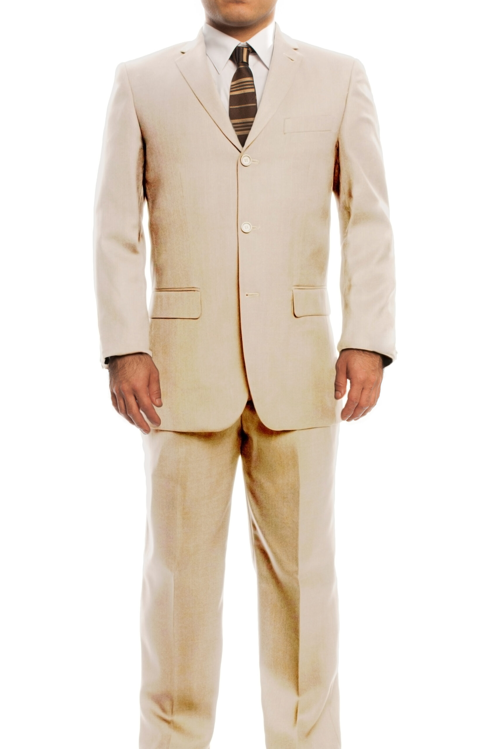 Summer months can get hot but luckily, our suits are breathable. The wool touch fabric is made of 65% Rayon Viscose and 35% Dacron,and also has a thread count in the super 150’s. This guarantees that not only the fabric is breathable and also very soft. The suit is also optimal for function- the armholes are stretch fabric and the suit is wrinkle resistant. The jacket comes with side vents, which is both fashionable but also practical. The Tan Classic Fit Three Button Suit jacket comes with three interior pockets and a notch lapel, while our pants come with a single pleat for extra mobility. Our pants also have a 36” inseam and the pants come unhemmed. We really keep our suits on the edge of fashion!