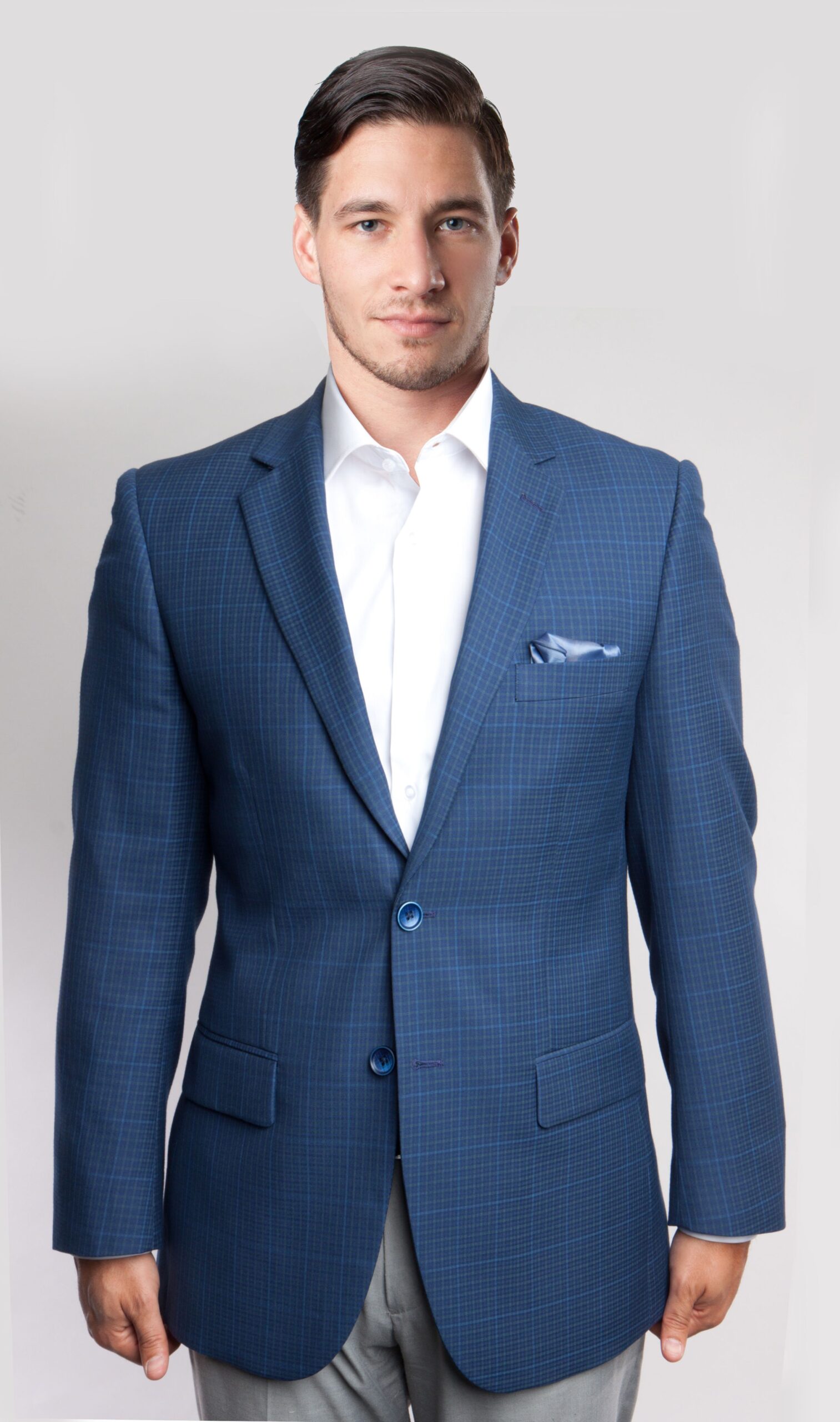 Sunday Best Two Tone Blue Plaid Modern Fit Two Button Jacket