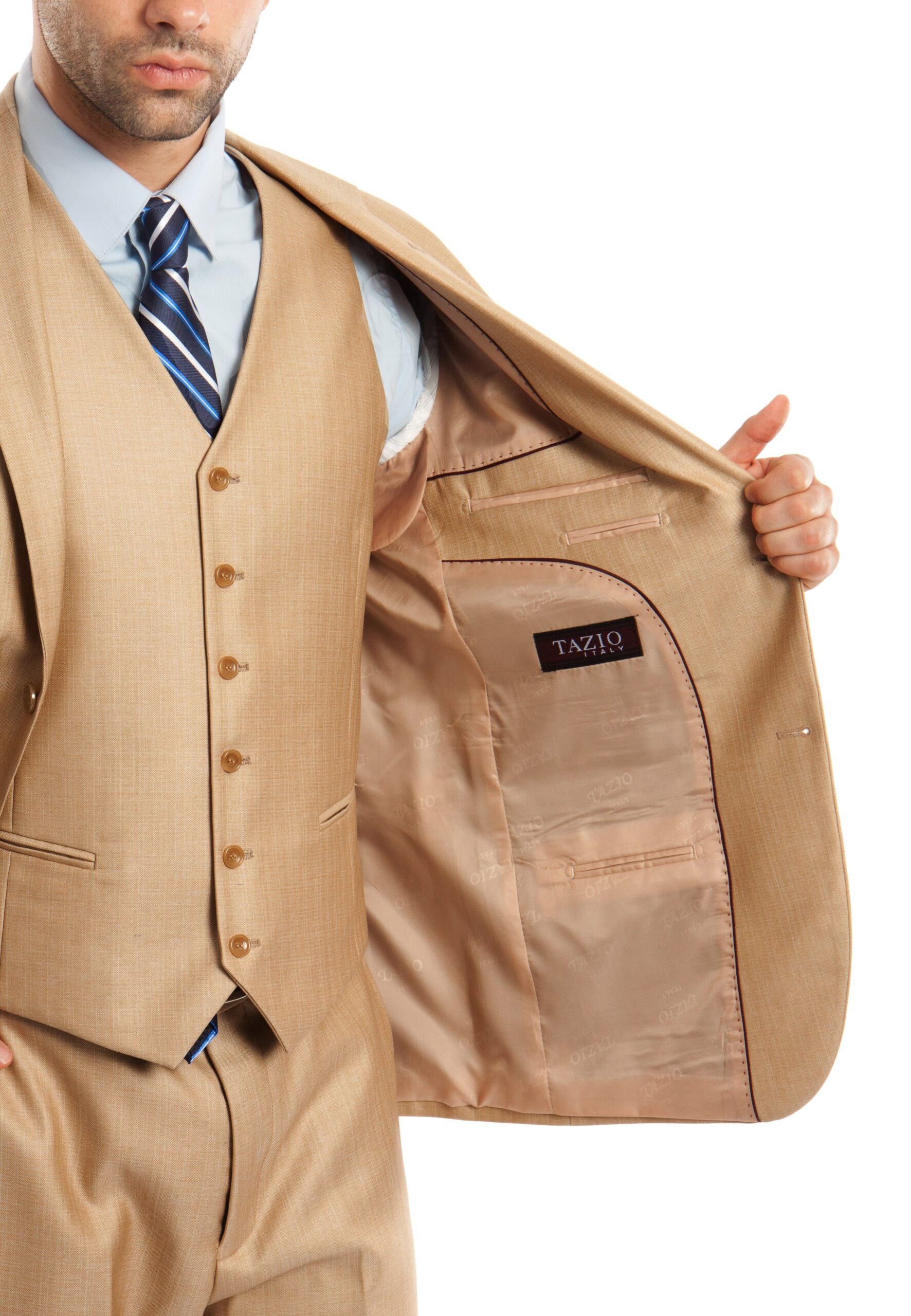 Wheat Tailored Fit Two Button 3-Piece Suit