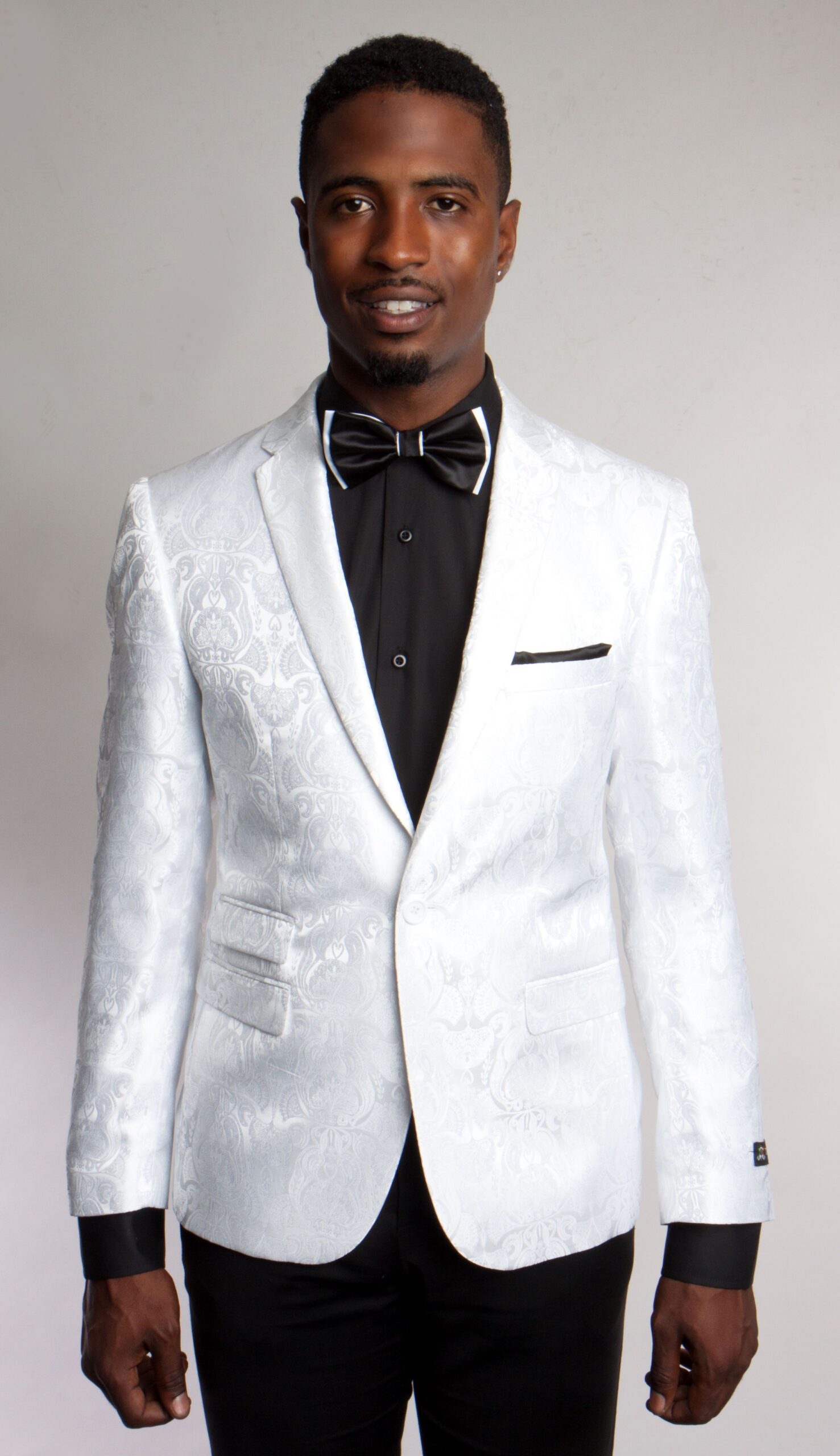 When the occasion requires that you celebrate huge and you just happen to be the highlight of the party, make this white floral pattern jacket as part of your star ensemble. Unique and one of a kind, the white floral pattern jacket is a style for the bold. Turn heads as you step into the event with this jacket. A fashion statement piece like the white floral pattern jacket gives you the confidence boost you need. Dress to the nines in this white floral pattern jacket available right here at Hundred Dollar Suits.